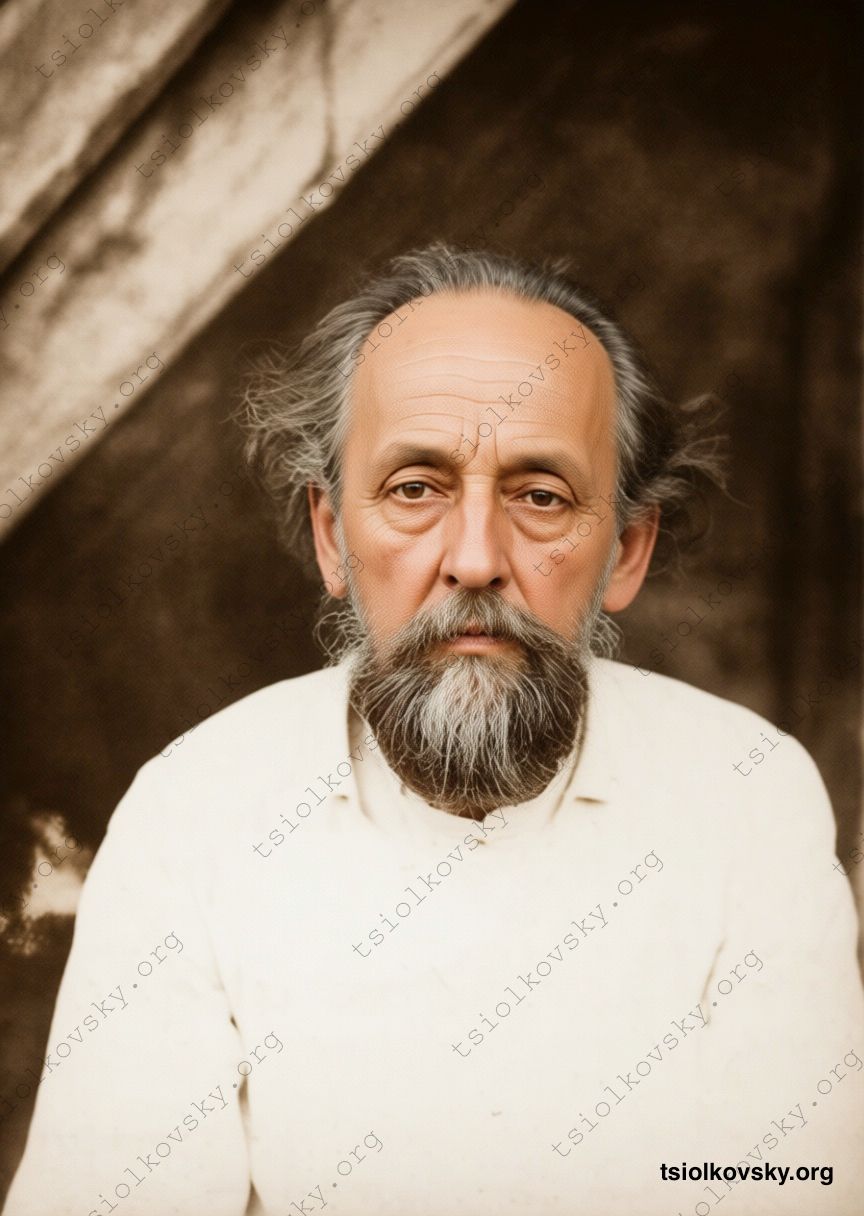 Константин Эдуардович Циолковский. 1934. Фотограф: Николай Александрович Можайкин. Цифровая копия оригинальной черно-белой фотографии. Источник: Wikimedia Commons (Public Domain).   Фото Константина Циолковского. 1934. Фотограф: Николай Александрович Можайкин. Источник цифровой копии оригинальной черно-белой фотографии: Wikimedia Commons (Public Domain). Восстановленная и колоризованная версия цифровой копии оригинальной черно-белой фотографии. Цифровая реставрация и колоризация проведена с применением технологий машинного обучения и нейросетевых алгоритмов в качестве инструментов предварительной обработки изображения: Mykola Krasnostup.