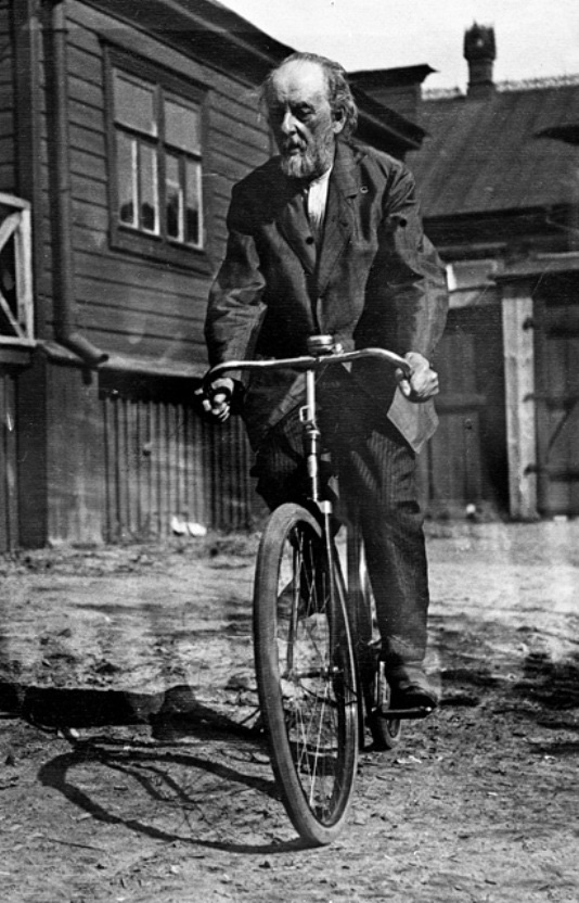 К. Э. Циолковский возвращается с велосипедной прогулки. 1932.